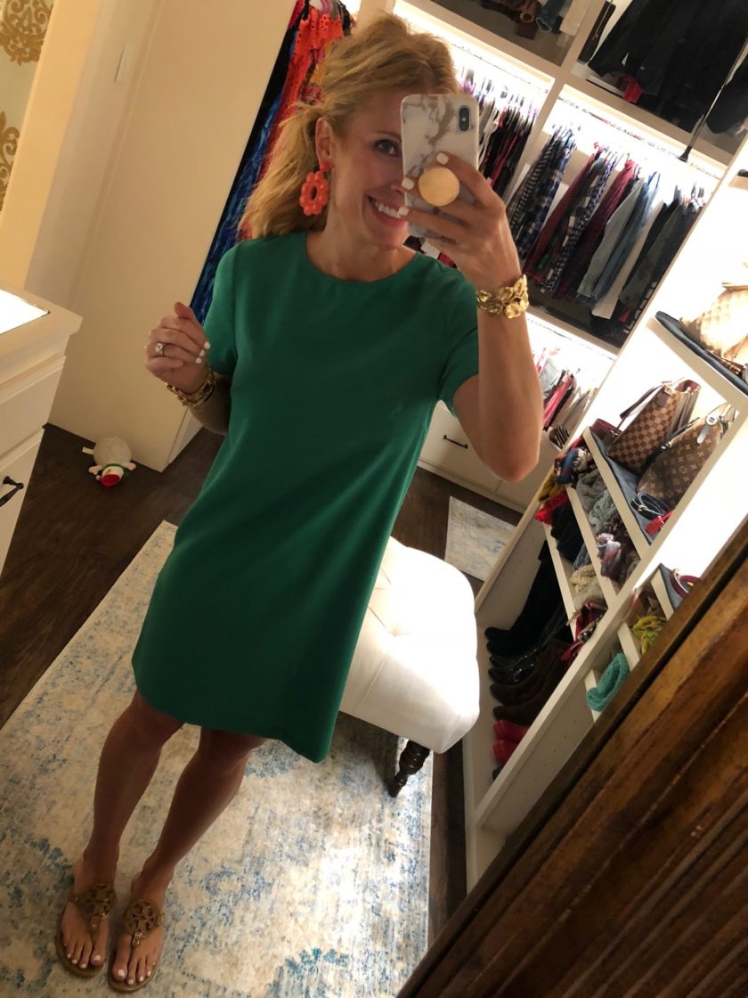 …and I wore this green dress that you’ve seen me wear 4 million times. Because it’s my favorite. And I love it so much. And it’s comfy. And it also comes in other colors (I have black as well!). See…