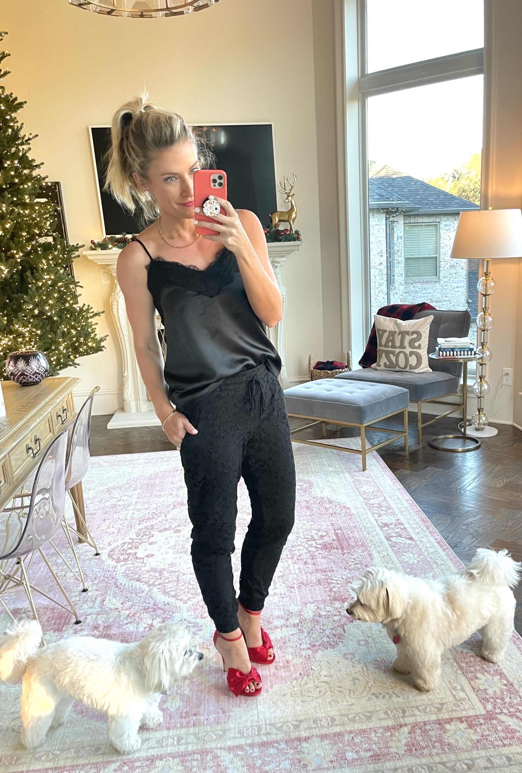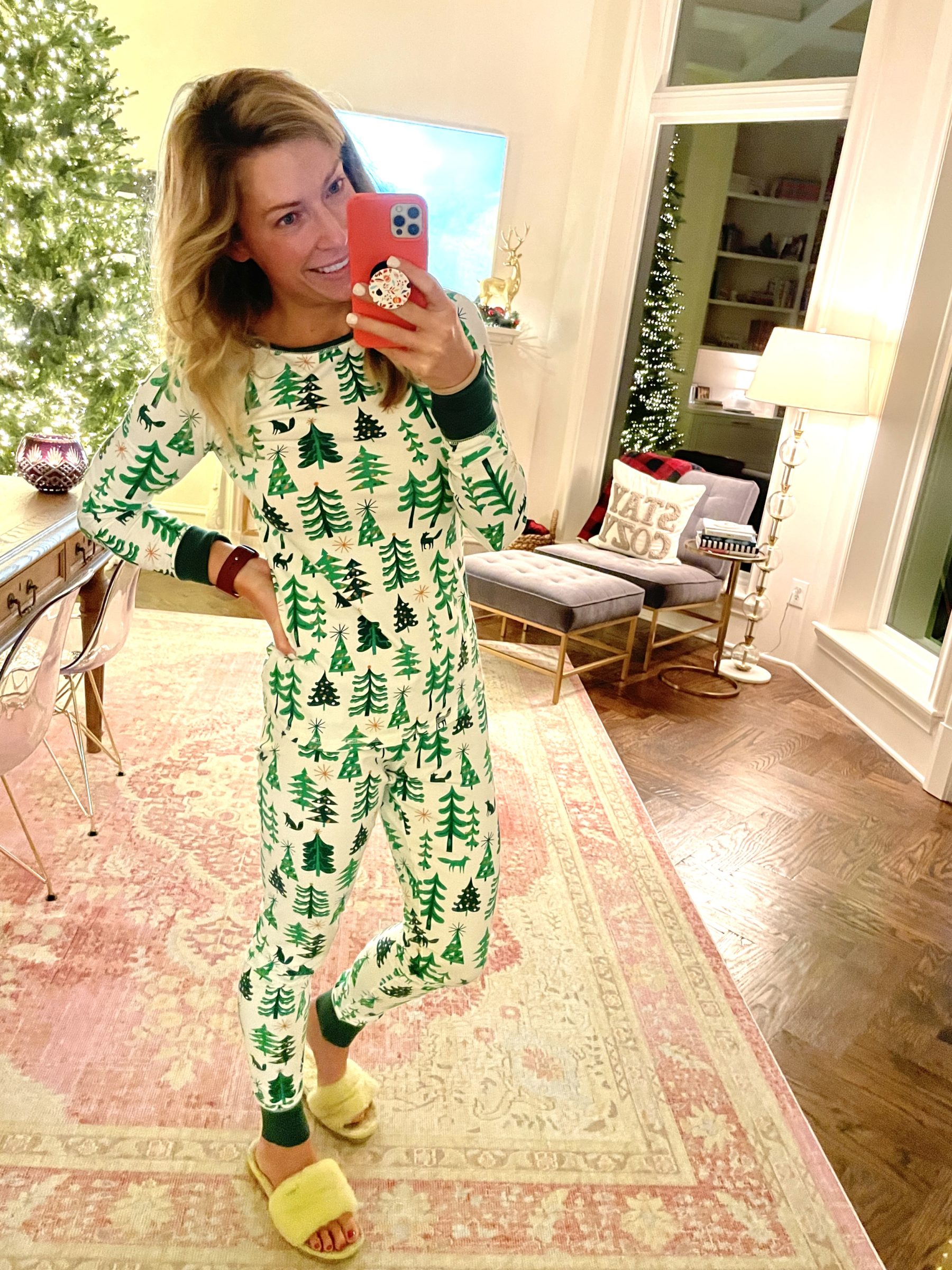 …for every merry memory to include super cute holiday pjs! You guys! How adorable are these pajamas?! They come in leopard and a fun red holiday print too, but these trees just make me HAPPY! (Pssst: These pjs run TTS. I bought them in xs.)