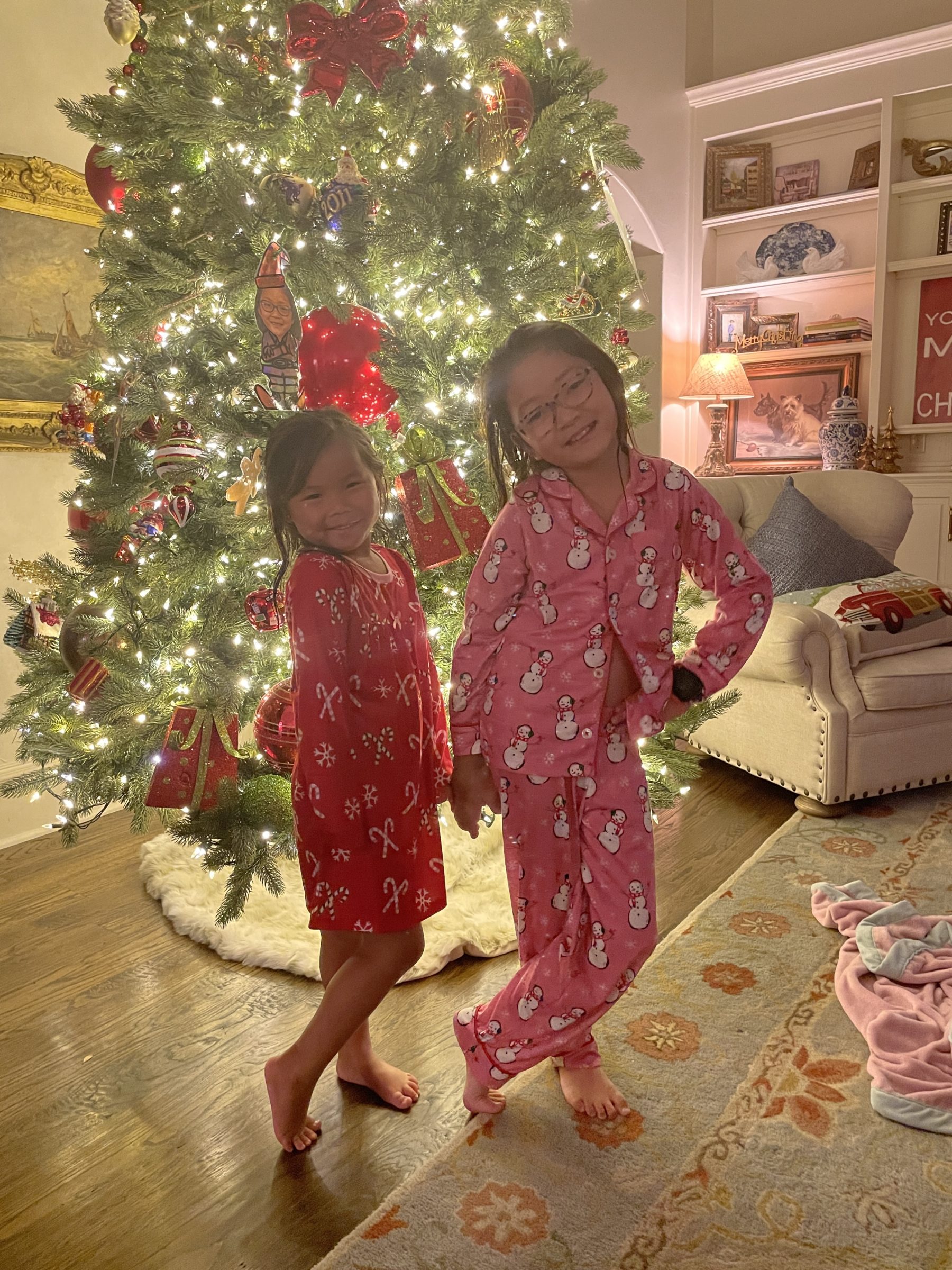…the little girls love their new Christmas pjs too! I bought Madeley this nightgown and Ashby this snowman set. These pjs plus popcorn and The Christmas Chronicles and these girls are M-E-R-R-Y!