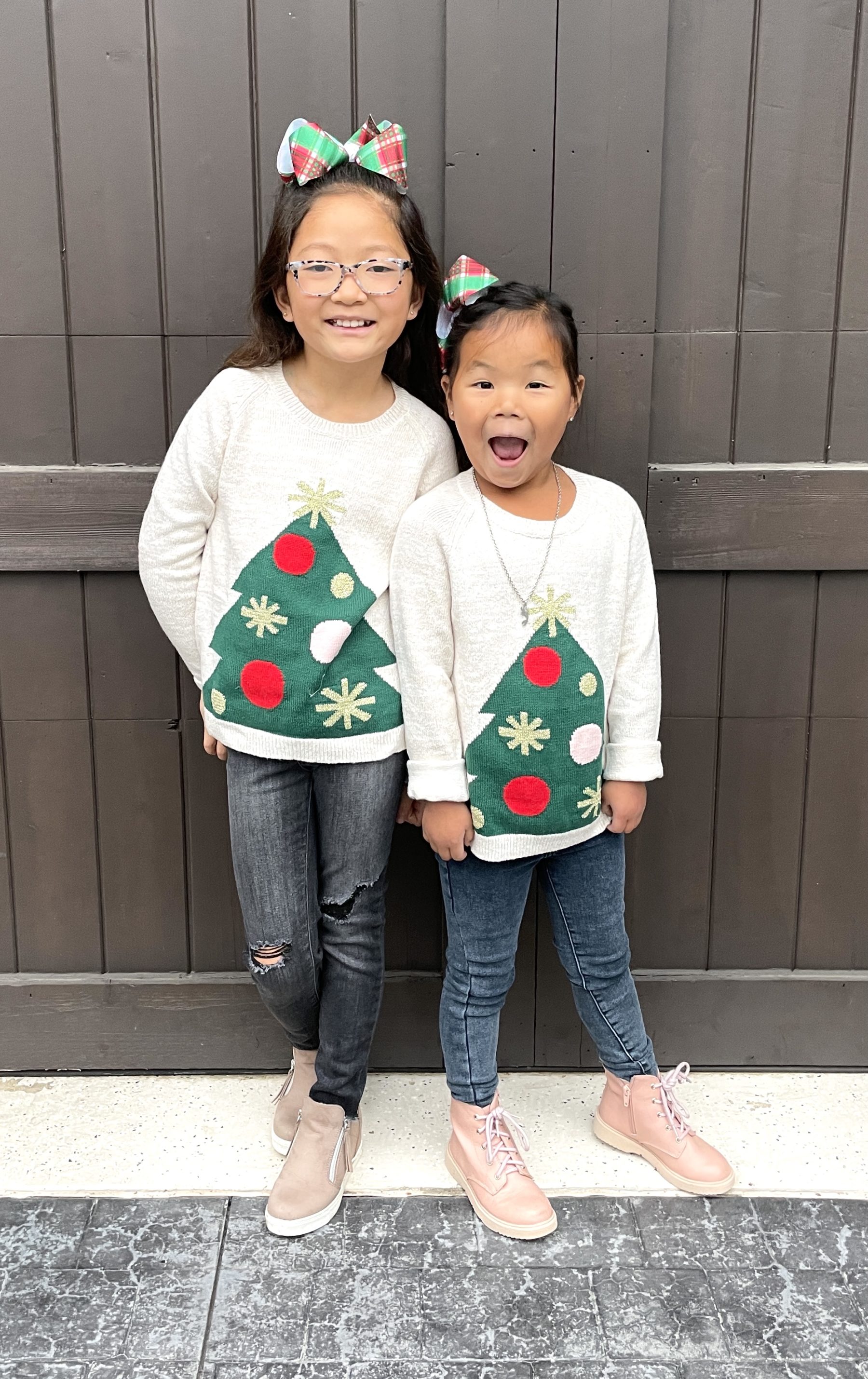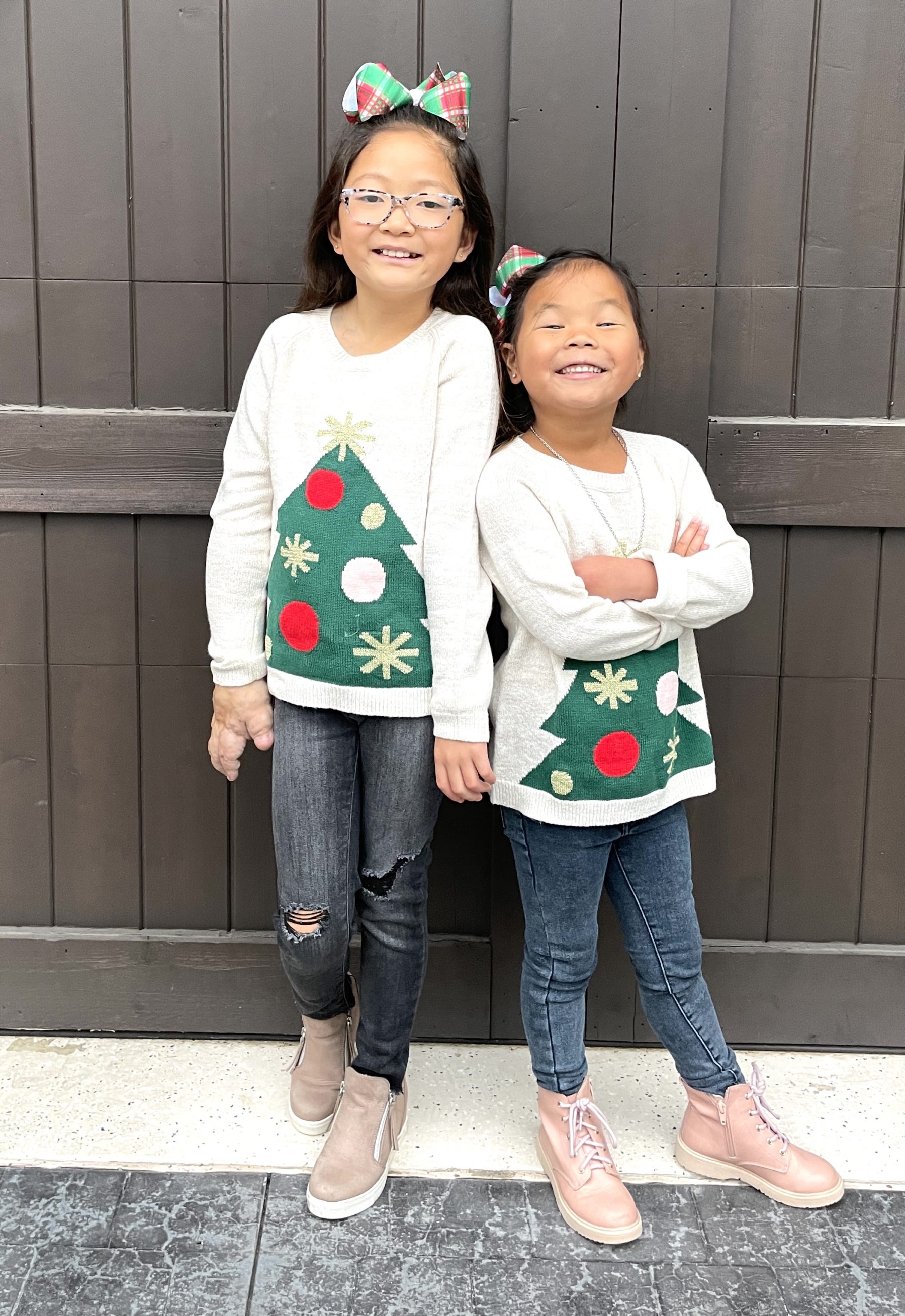 Love that first picture, so festive!! The girls in their Christmas tree sweaters are too cute! Have a great weekend!