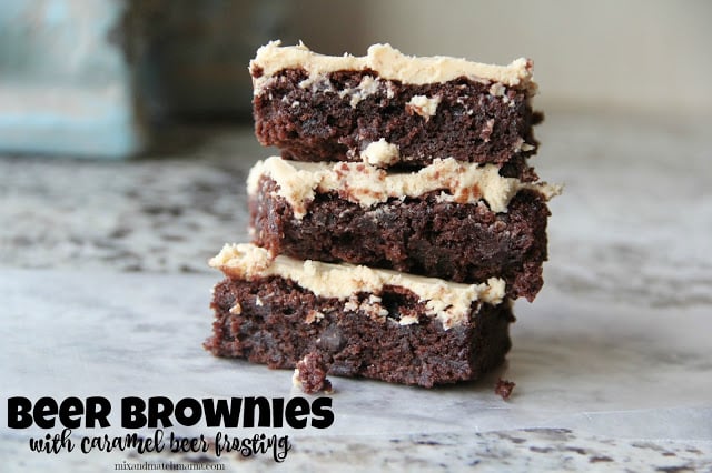 I’m thinking if you host or attend a St. Paddy’s Day party this year, Beer Brownies with Caramel Beer Frosting is just what the leprechaun ordered.